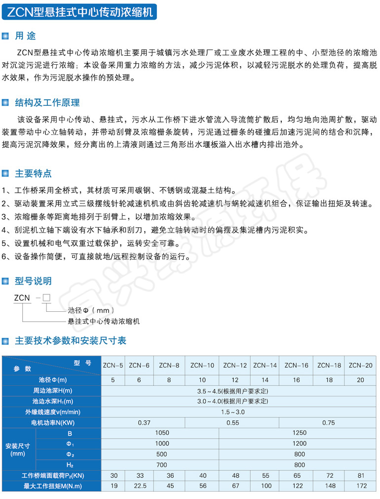 ZCN型悬挂式中心传动浓缩机