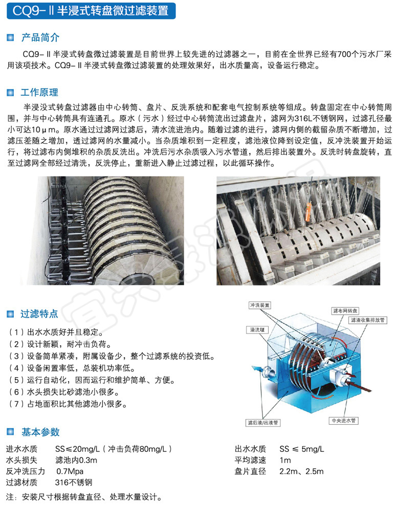 CQ9- II半浸式转盘微过滤装置